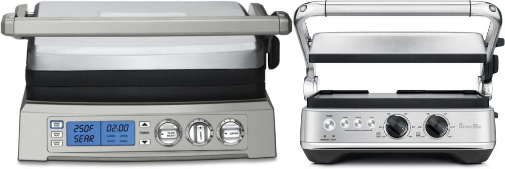 If you’re trying to decide between the Cuisinart Elite Griddler (GR-300WS) and the Breville Sear and Press (BGR700BSS), you’re not